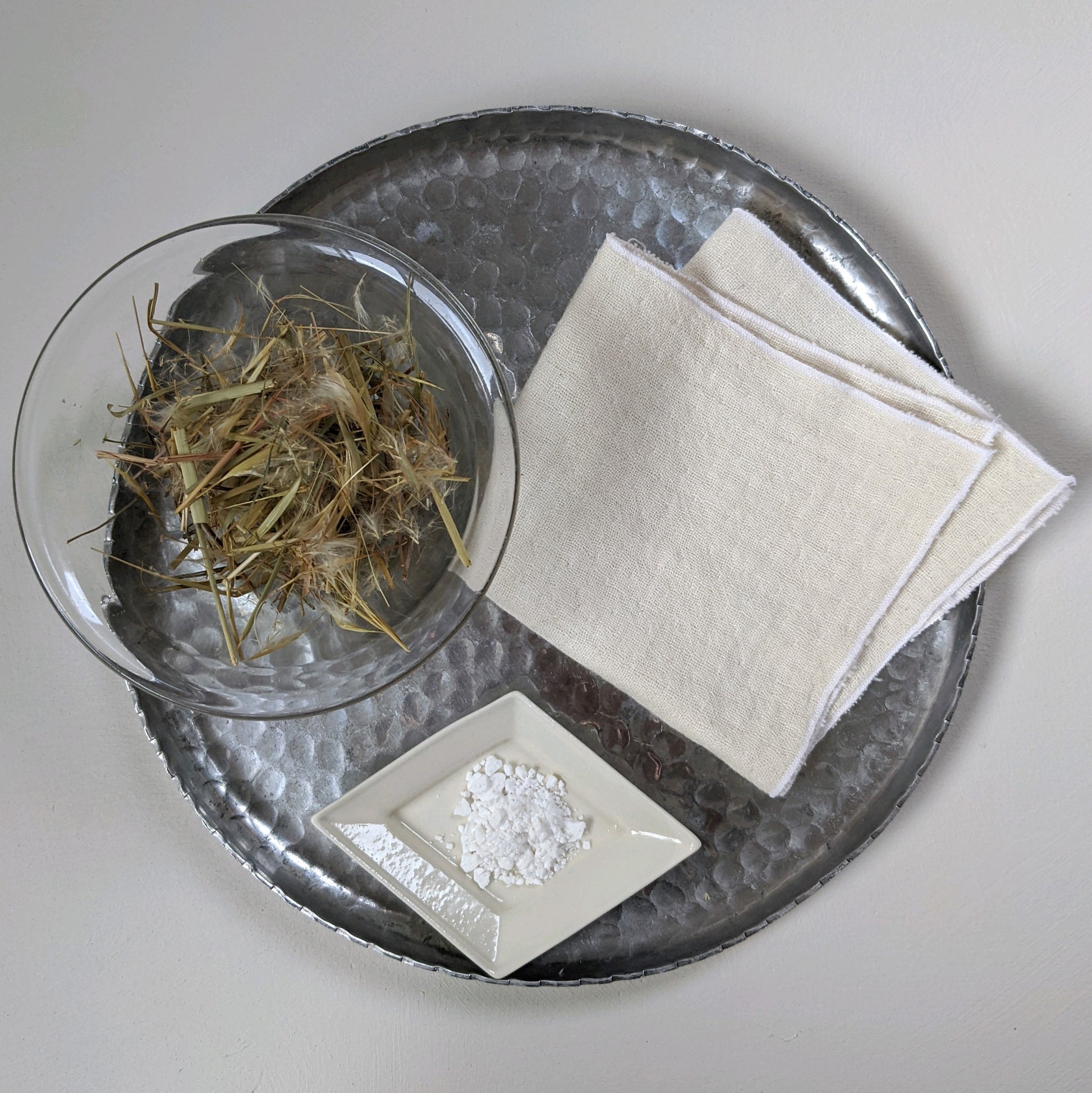 草木染めキット 届いてすぐ染められる 天然の草木「カリヤス」 オリジナルハンカチ セット わたからつむぐ